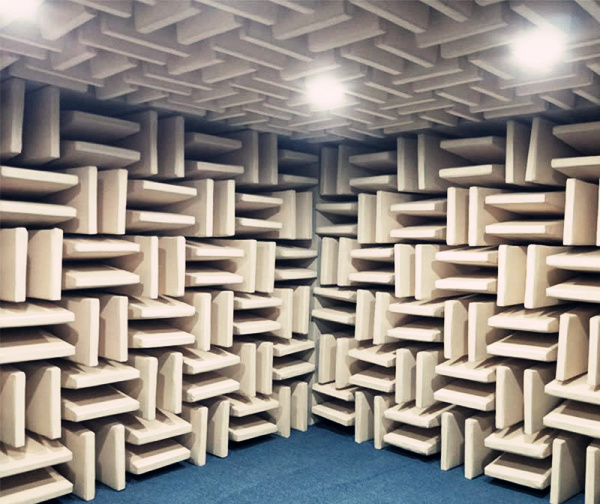 尖劈的吸聲能與它的形式、長(zhǎng)度(劈部和底部)、內(nèi)填吸聲材料的密度和護(hù)面材料等有關(guān)。目前均通過方形的大駐波管所測(cè)得的正入射吸聲系數(shù)來表征。由于測(cè)試尖劈的駐波管截面面積較大,其高頻的截止頻率較低,大約在300~...