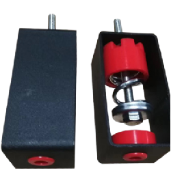 阻尼減震器: 1、鑄鋼外殼,采用合金鋼彈簧,并經噴塑處理,耐候性佳,有效增加使用壽命,防震效果好。 2、頂部、底部均采用防滑耐磨橡膠以及固定螺栓,安全性能大大提高,安裝方便。 [1] 3、能夠有效隔離各類臥式、立式水泵、風機、空調機組、發電機組、柴油機組、管道、等動力設備的振動,并保護及延長 其使用壽命。 4、可用于隔離上層建筑震動聲源的隔音吊頂,有效阻止結構傳聲。